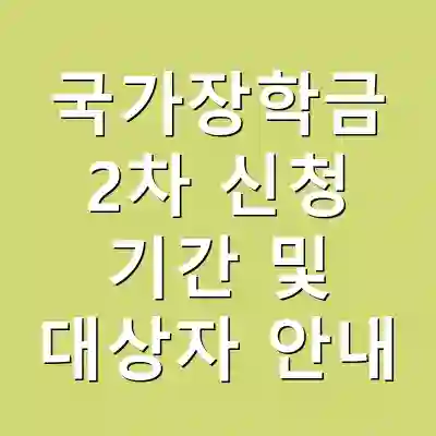 국가장학금 2차 신청은 다양한 대학생을 위한 지원 프로그램입니다. 신청 대상과 기간을 정확히 이해하고, 필요한 서류를 철저히 준비하는 것이 중요합니다. 이러한 과정을 통해 학비 부담을 줄여, 보다 나은 대학생활을 누릴 수 있을 것입니다.