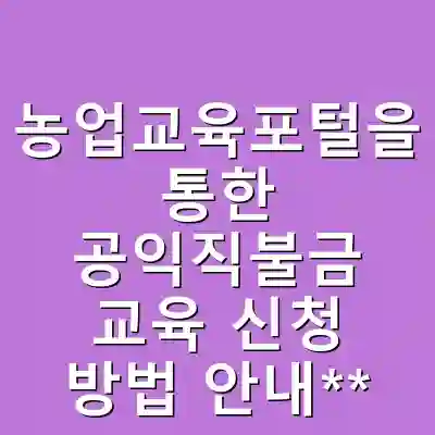 농업교육포털은 공익직불금 교육을 온라인으로 신청할 수 있는 플랫폼입니다. 교육 이수는 직불금 수령의 필수 조건이며, 교육 과정은 농업인의 공익적 역할을 강조합니다. 올바른 방법으로 교육을 신청하고 이수하여 안정적인 농업 활동을 이어가세요.