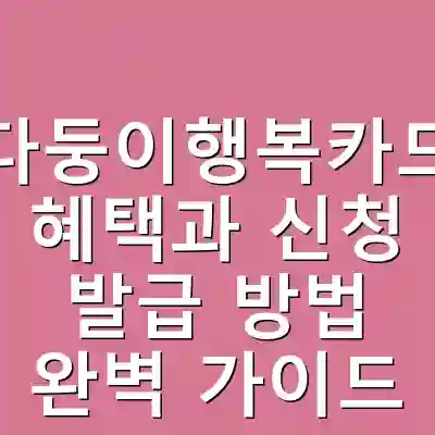 다둥이행복카드는 다자녀 가구를 위한 복지 카드로, 서울과 경기도에서 발급됩니다. 신청 조건은 자녀 수와 연령 기준을 만족해야 하며, 다양한 할인 혜택을 통해 생활비 절감이 가능합니다. 간편한 신청 방법과 유용한 혜택을 잘 활용해 보세요.