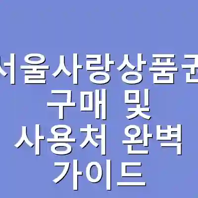 서울사랑상품권 구매 및 사용처 완벽 가이드