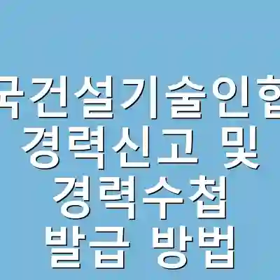 한국건설기술인협회의 경력신고 및 경력수첩 발급 방법을 이해하는 것은 건설 기술자로서의 경로를 확고히 하는 데 큰 도움이 됩니다. 경력수첩은 단순한 종이 문서가 아닌, 전문성을 입증하고 다양한 기회를 창출하는 중요한 도구입니다. 경력신고 과정을 차근차근 진행하며 필요한 점수를 확보하여 성공적인 건설 경력을 쌓아가시기 바랍니다.