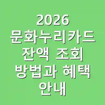 2026 문화누리카드는 연간 15만 원의 지원금으로 문화예술 활동을 지원합니다. 청소년 및 준 고령자에게는 추가 지원도 제공되며, 잔액 조회는 온라인, 모바일 앱, 전화로 간편하게 가능합니다. 다양한 사용처에서 문화생활을 더욱 풍요롭게 즐길 수 있습니다.
