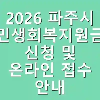 2026 파주시는 민생회복지원금을 통해 소득 하위 70% 가구에 지원을 제공합니다. 신청은 온라인 및 오프라인으로 가능하며, 지원금은 차등 지급됩니다. 정확한 정보 입력과 신청 기간 확인이 필수적입니다.